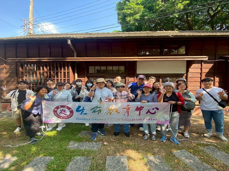 南華大學舉辦「大林慢遊趣」活動,探索體驗在地文化,並於臺鐵站長宿舍前大合照。