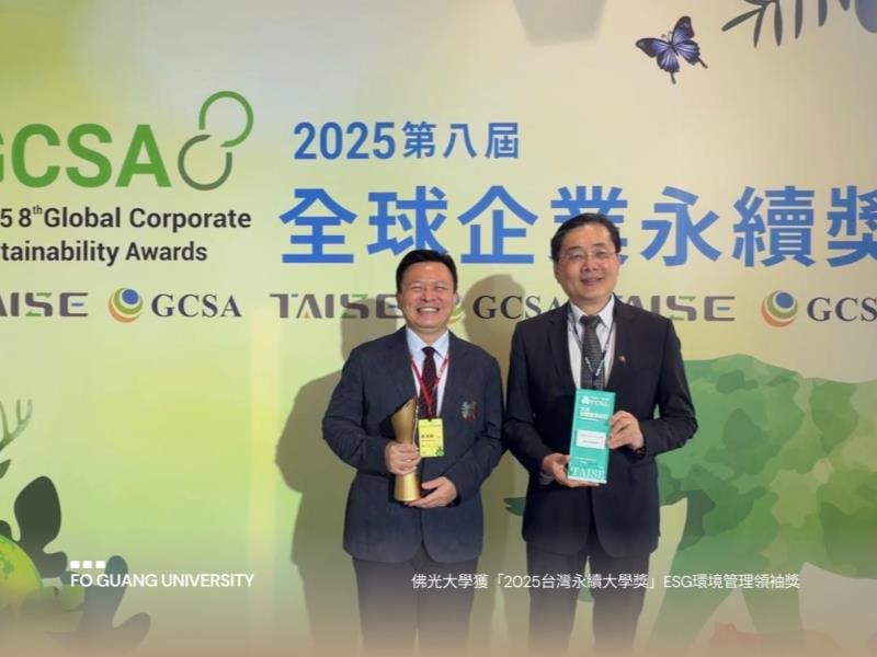 趙校長強調,永續不僅是政策,更是一種校園共同實踐的生活方式,此次佛光大學獲的兩個獎項正是社會對佛大長期深耕永續的肯定。