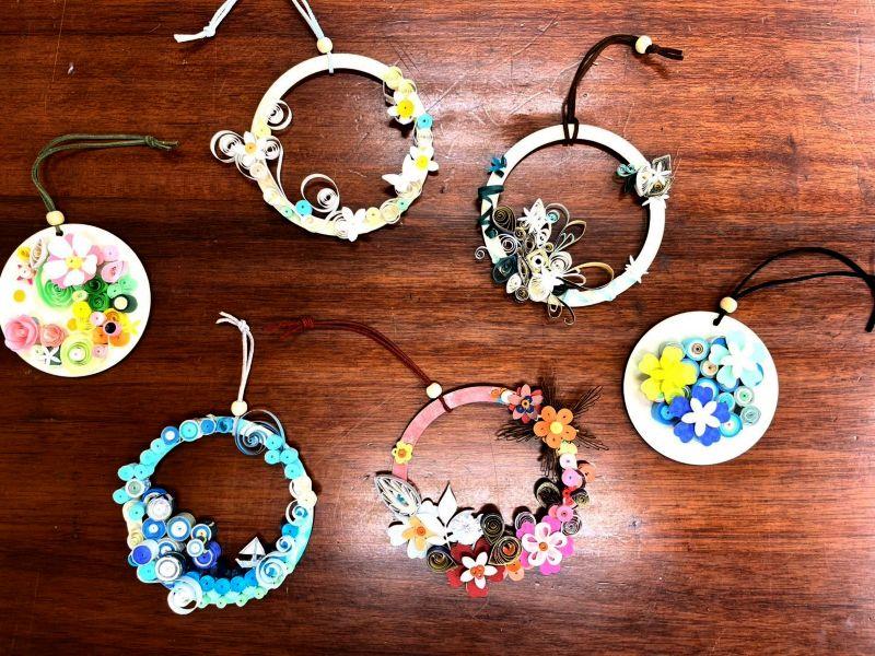 圖4:學員利用廢棄紙張製作之衍紙藝術吊飾展示。