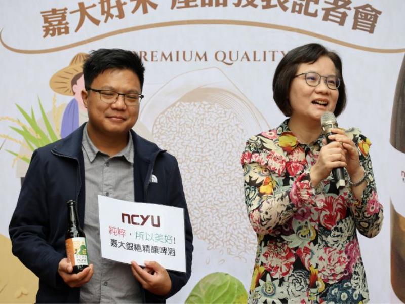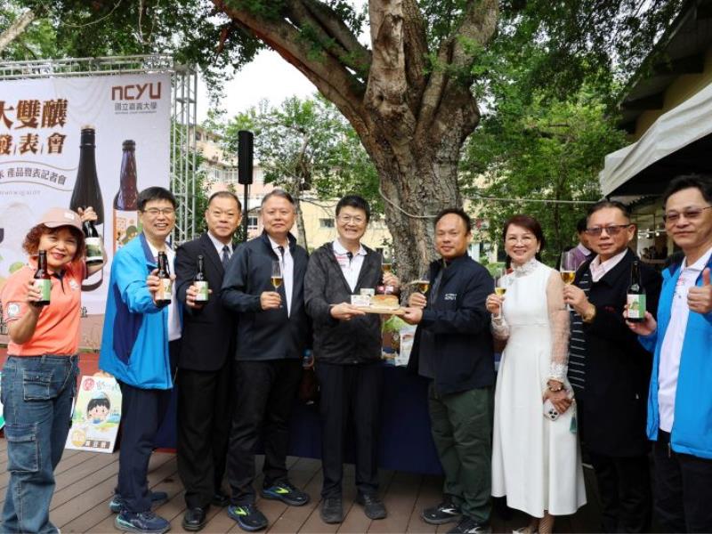 嘉義大學今(21)日在蘭潭校區員生消費會合作社沁心池廣場舉辦「嘉大雙釀新品發表暨多元產品開發發表會」,推出全新農糧產品,包括「嘉大銀禧精釀啤酒」、「晶珠美人純米大吟釀」、「國產韓式高麗菜泡菜」及「無麩質戚風蛋糕」等。活動由臺南區農業改良場陳昱初場長、嘉義大學林翰謙校長、台灣菸酒公司桃園酒廠吳政憲廠長、蘇甲辛行銷企劃師、嘉大傑出校友會劉芸富校友等貴賓及產學團隊共同揭幕,展現嘉大在永續農業、食品加工與產學合作上的研發成果。活動規劃「國產米糧多元產品展示區」及「食農永續教育展示區」,完整呈現嘉大從育種、農藝、發酵、加工到產品化的跨域整合能力,吸引產官學界共同參與。