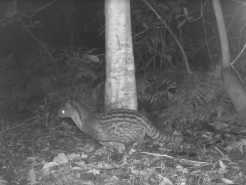 麝香貓(中大型夜行性稀有哺乳類) 警戒心高,對光害、噪音干擾極為敏感