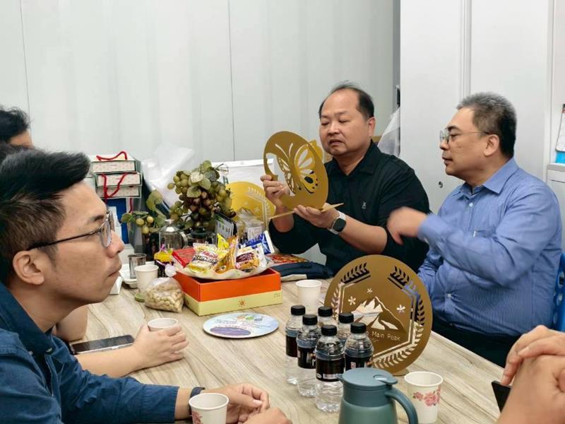 南華大學與佰祥雷射金屬設計加工公司簽署產學合作協定,雙方進行交流座談,並討論文創小物相關設計。