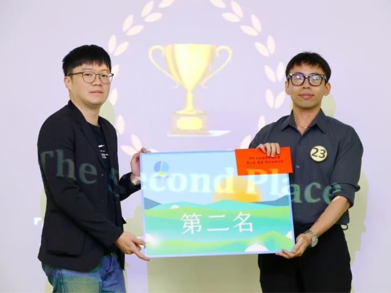 圖3:林智忠教授頒獎予第二名全英文授課觀光暨管理碩士學位學程蔡福義同學(右)。