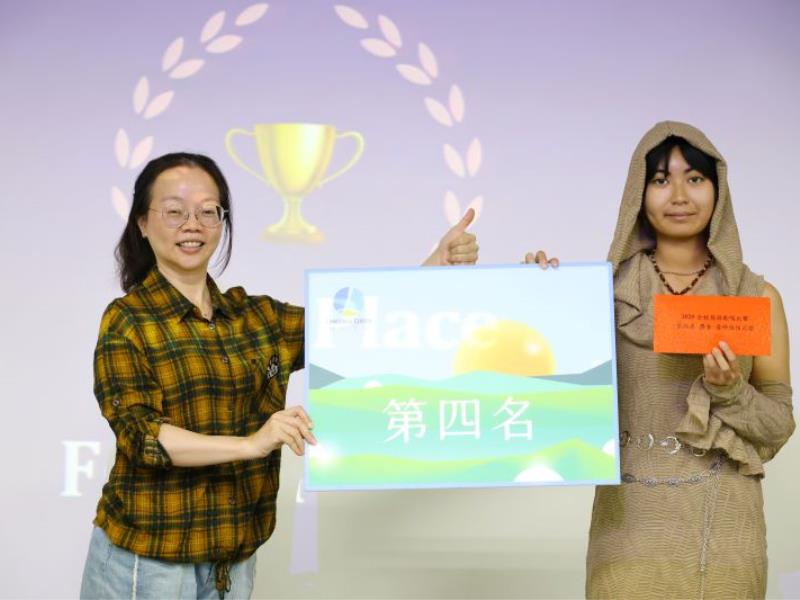 圖4:林智忠教授頒獎予第三名木質材料與設計學系周紫洋同學(右)。