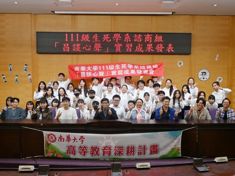 南華大學生死學系諮商組舉辦實習成果發表,師生合影留念。