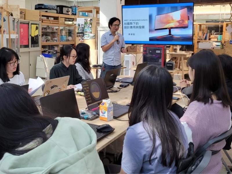 ▲創新與創意中心舉辦講座,邀請講師分享AI時代的設計應用,鼓勵學生結合專業所學與AI工具,打造解決生活痛點的創新方案。