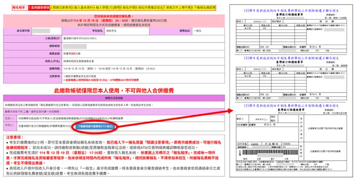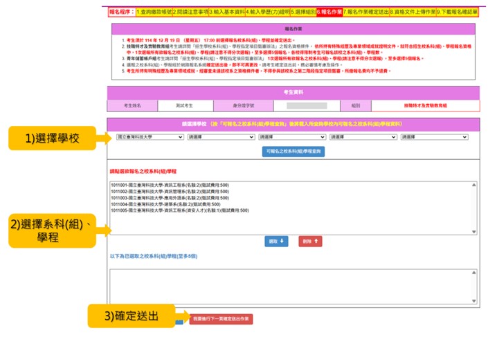 2.若有暫存報名資料,請務必於114年12月19日17:00前送出,才算完成校系選填。
