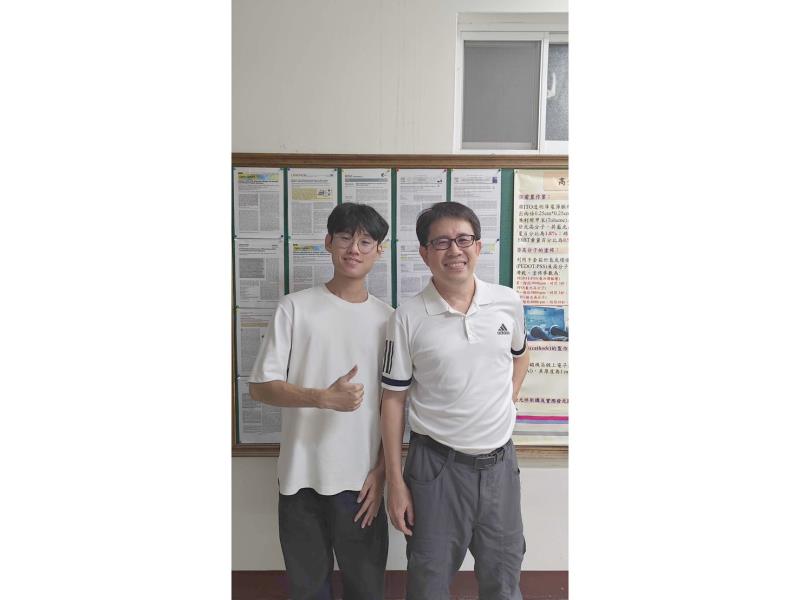 圖5:陳思翰老師與所指導專題學生電物系大四何湘仁同學(本篇論文第二作者)在實驗室前合影。