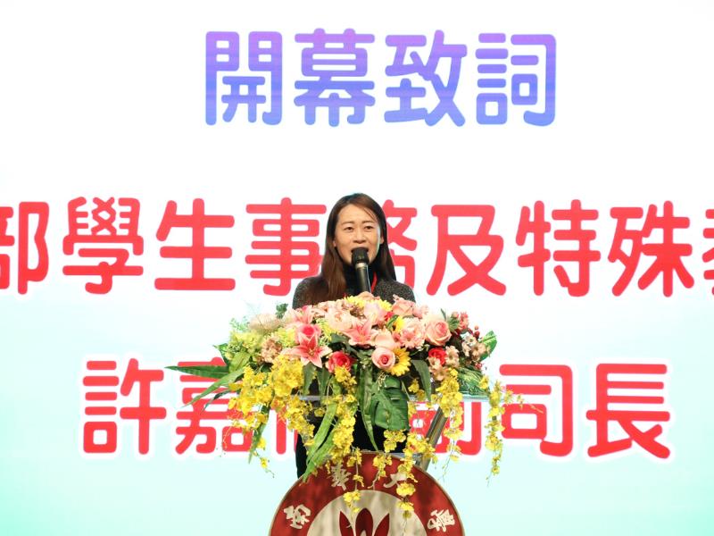 南華大學辦理「114年教育部生命教育特色學校、績優人員及微電影競賽頒獎典禮」,教育部學生事務及特殊教育司副司長許嘉倩致詞。