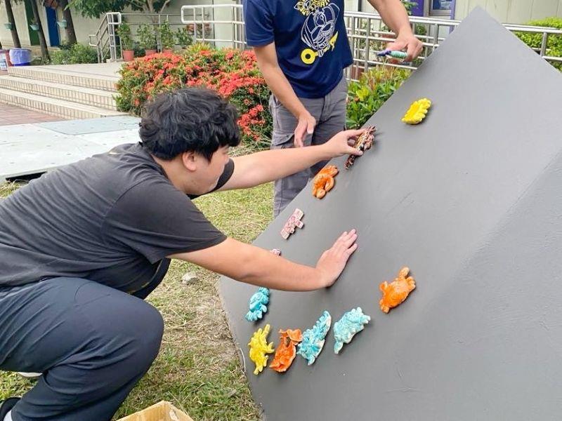 圖6:團隊將交趾陶作品安裝於嘉大昆蟲館外。