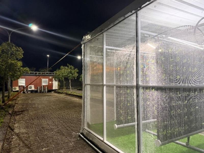 目前行動溫室由邱秀貞副教授帶領團隊與合作廠商建置中,行動漁場部分由水生生物科學系賴弘智教授負責設計與整合養殖系統,蔬菜栽培與植物生理部分則由農藝學系黃文理教授指導與測試。各模組預計於明(115)年全面完工後,將可進行實地綠氧應用與資源循環效率驗證。