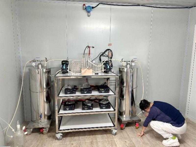 本示範站由應用化學系邱秀貞副教授主導規劃與建置,整合太陽能再生能源、雨水回收再利用及AEM(Anion Exchange Membrane)電解技術,以綠氫與綠氧作為農業與養殖應用的核心介質。此電解技術為清華大學、台灣中油公司與嘉義大學共同合作開發,具備高效率、低能耗特性,能穩定產製高純度氫氣與氧氣。