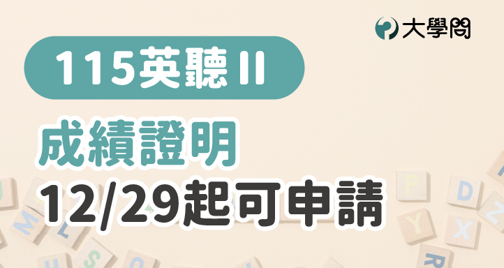 / 情報 / 大學考情 / 【115英聽Ⅱ】成績證明 12/29起可申請
