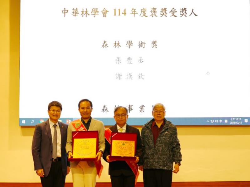 會員大會同時舉行頒獎典禮,表揚在森林學術研究與實務推動上具卓越貢獻的個人與團體,頒發森林學術獎、森林事業獎、優良基層人員獎,以及大專院校獎學金、高農獎學金與森林學術論文獎,肯定學界、產業界與青年學子長期投入林業永續發展的努力與成果。