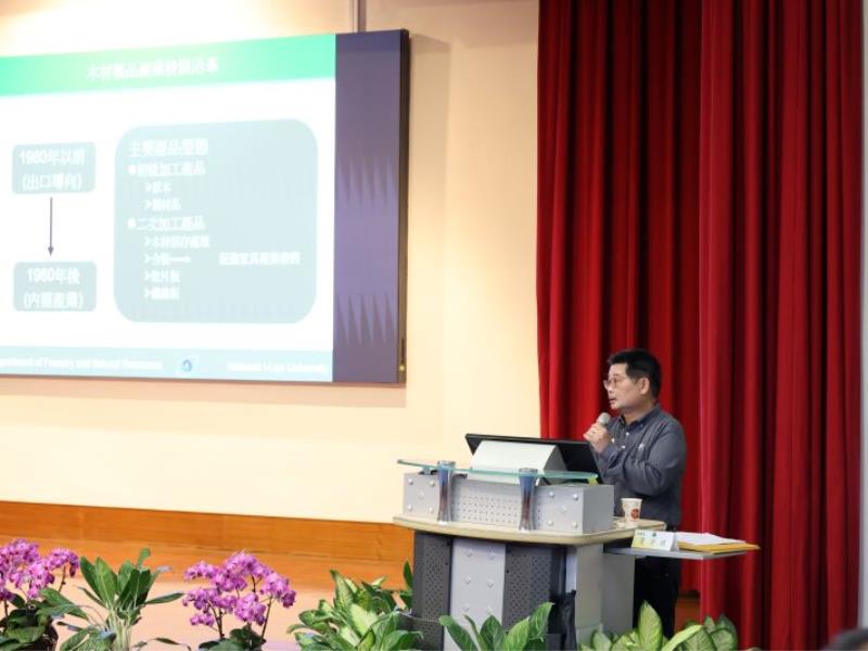 圖5:卓志隆教授專題演講,深入剖析「臺灣木竹製品現況與國產材產業鏈建構」。