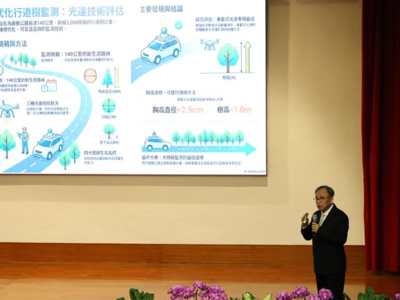 圖7:謝漢欽博士分享光達技術於韌性都市林建構中的應用與發展。