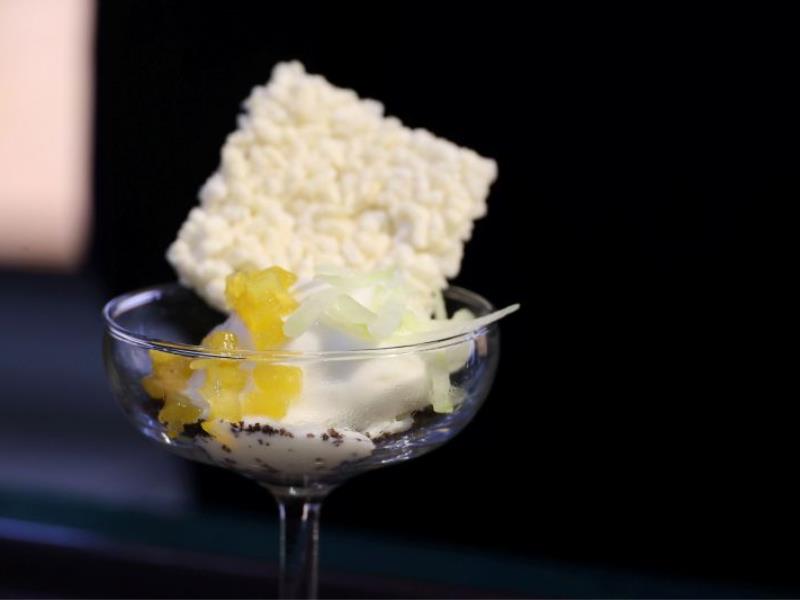 本次所發表的「米冰淇淋佐鳳梨佛手瓜果醬」創意甜點,以幸福嘉義米的米香為基底,打造酥脆口感,選用在地鳳梨與奮起湖佛手瓜製成果醬堆疊甜味,再搭配幸福嘉義米冰淇淋,這道甜點不僅結合嘉義在地元素與創意,亦提供一個獨特且令人印象深刻的甜點體驗,絕妙滋味讓人感到驚喜,口感獲得現場出席貴賓的一致好評。