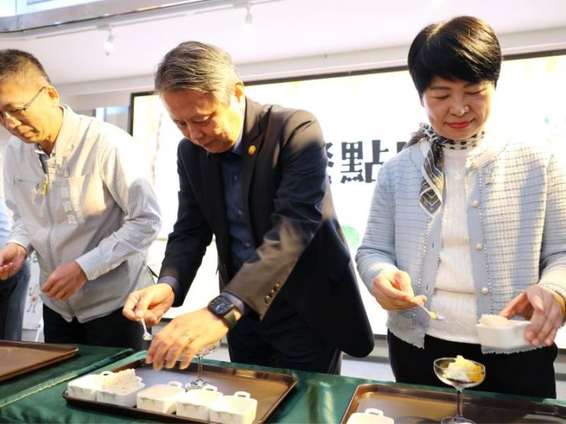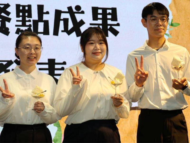 嘉義大學行銷與觀光管理學系將碩士班課程結合食農教育與環境永續,以嘉義在地農特產品-幸福嘉義米、鳳梨及佛手瓜為主題,由修課學生分組進行發想,提出具永續概念的永續餐點企劃書,在新?花園酒店、三光米股份有限公司協助下,12月17日在新?花園酒店舉辦「米冰淇淋佐鳳梨佛手瓜果醬」創意甜點發表記者會,展現嘉大在教育、農業、科技與地方連結等面向深耕永續發展。