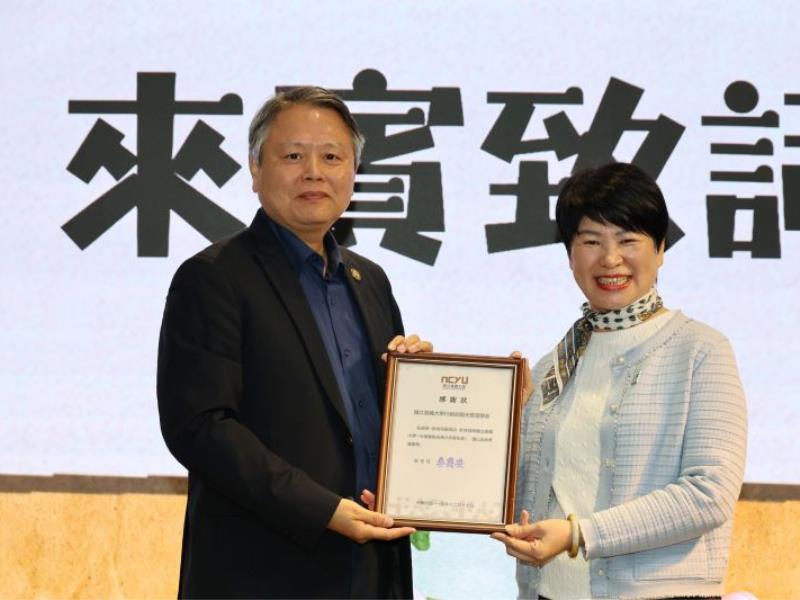 圖5:嘉大陳瑞祥副校長頒贈感謝狀予三光米股份有限公司林肇榮董事長(右)。