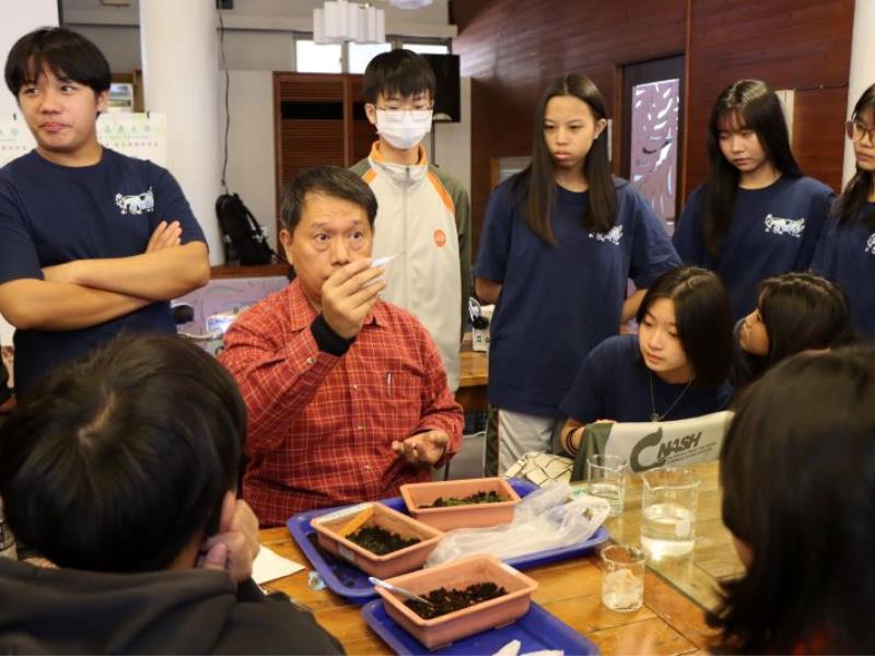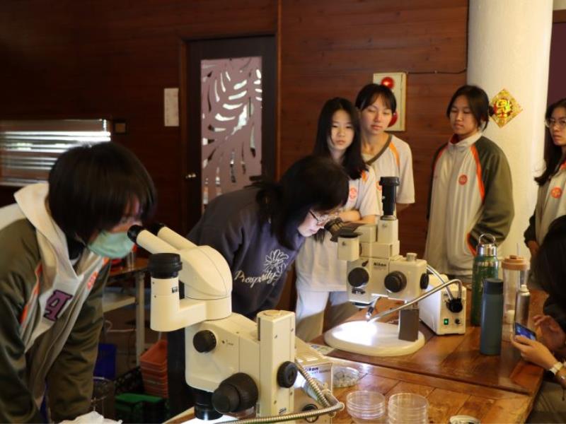 圖2:暨南國際大學附屬高級中學(埔里高中)透過顯微鏡觀看菌根
