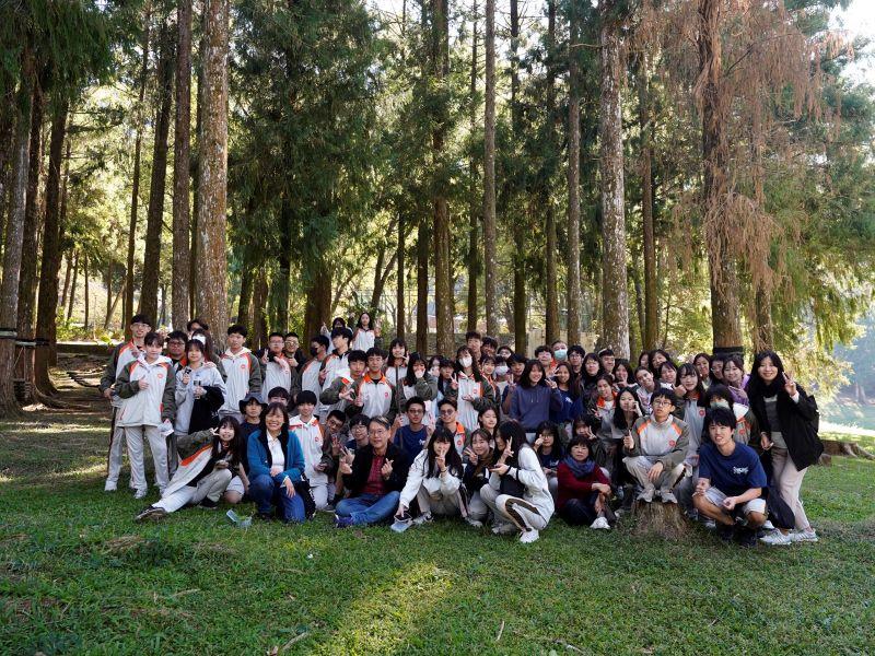 圖5:林瑞進教授與暨南國際大學附屬高級中學(埔里高中)師生於惠蓀林場合影。