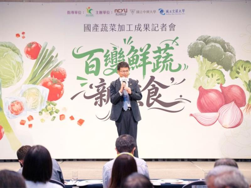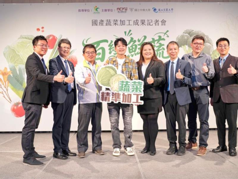 由農業部農糧署指導,嘉義大學、中興大學與宜蘭大學共同舉辦的「百變鮮蔬?新煮食」國產蔬菜加工成果記者會,18日於台中長榮桂冠酒店舉行。活動以「健康快易煮,生活好幸福」為主軸,展現三校在國產蔬菜加工、保存與多元應用上的研發成果,透過低鹽破壁、急速冷凍及創新加工技術,為國產蔬菜開拓高值化與市場化的新契機。
