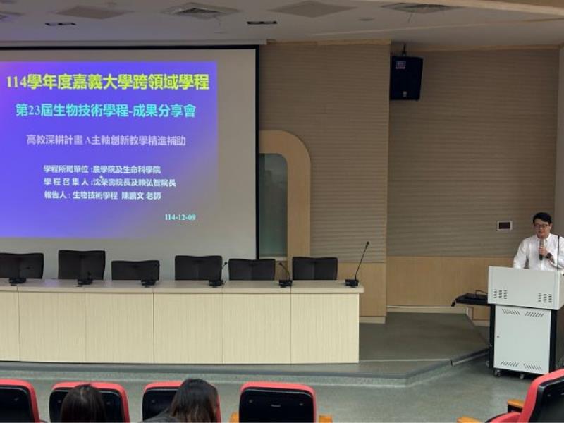 圖3: 農生系陳鵬文教授分享生物技術學程成果。