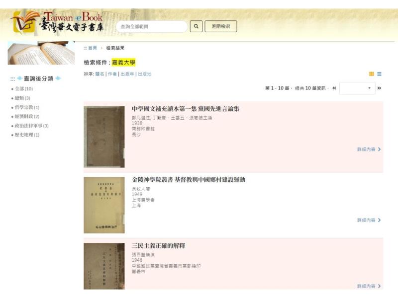 圖3: 嘉大圖書館10冊日文舊籍典藏於國家圖書館之臺灣華文電子書庫系統。