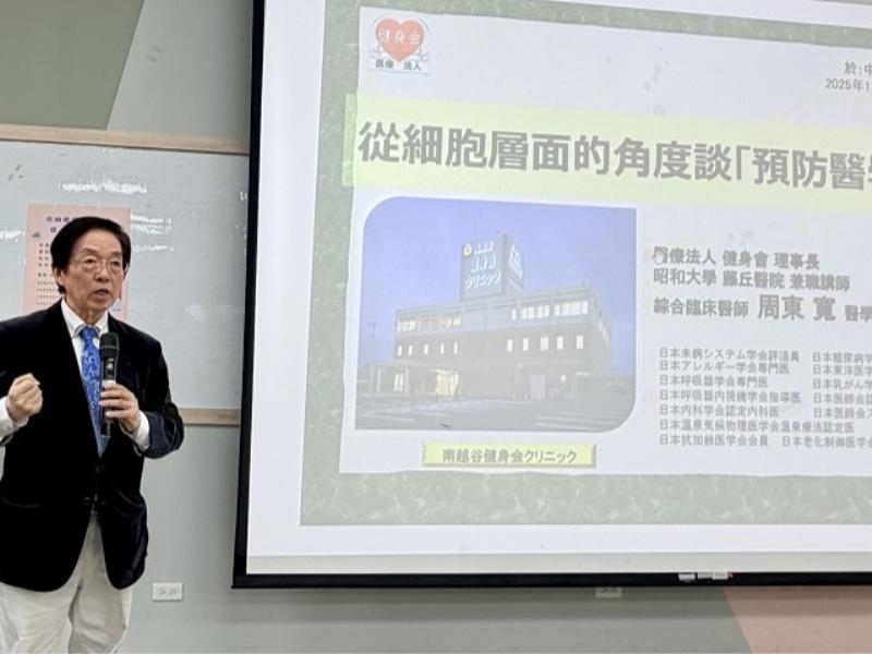日本醫學博士周東寬以「從粒線體細胞層面談預防醫學」為題,深入剖析細胞能量工廠——粒線體,如何影響健康壽命與疾病預防。他指出,現代醫學正從「治療疾病」轉向「預防疾病」,而粒線體功能衰退是癌症、糖尿病等文明病的隱藏危機。周博士以淺顯方式說明粒線體如何將養分轉化為能量,並分享臨床觀察,證明透過生活型態調整可喚醒細胞生命力,降低未來醫療支出,實踐「精準預防醫學」理念。