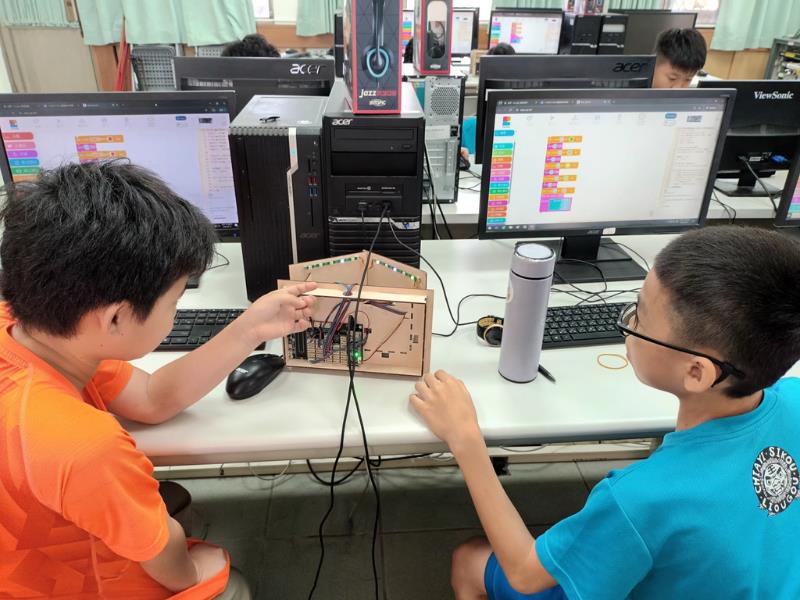 該模組可讓學生透過實際操作,深入理解災害發生前後的四個關鍵階段:減災、整備、應變與復原。引導學生運用不同元件設備、多元感測元件與基礎編程邏輯,設計可實際應用於預警與應變的防災系統,將原本抽象的防災概念具體化、視覺化、實踐化,有效提升學生的理解力與實務應用能力。此課程導入具實作性與互動性的教學模組,涵蓋地震、水災、火災與空氣污染等實際災害情境,並結合聯合國永續發展目標(SDGs)中「永續城市與社區」、「氣候行動」等核心議題,培養學生的在地關懷與全球視野。