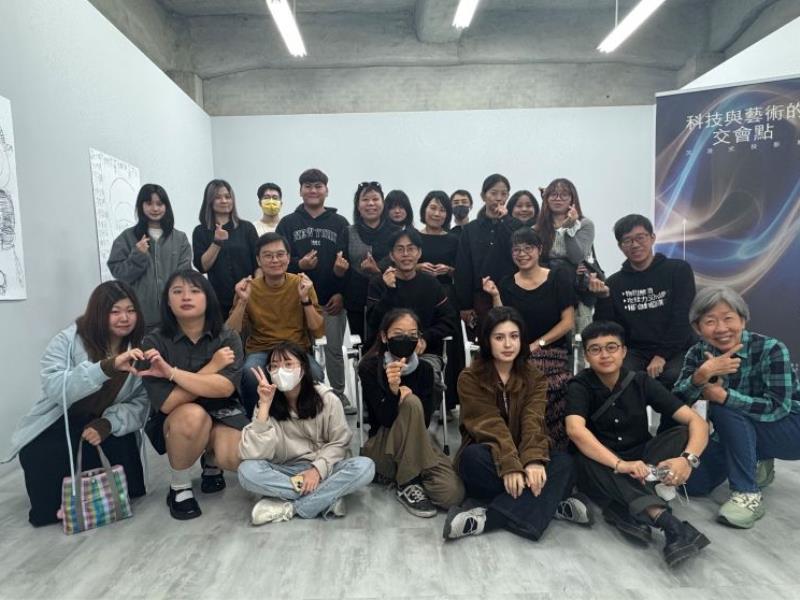圖4:《科技與藝術的交會點》12月19日開幕式邀請王聖文教授、鐘凱瀚教授與嘉大視藝系研究生座談。