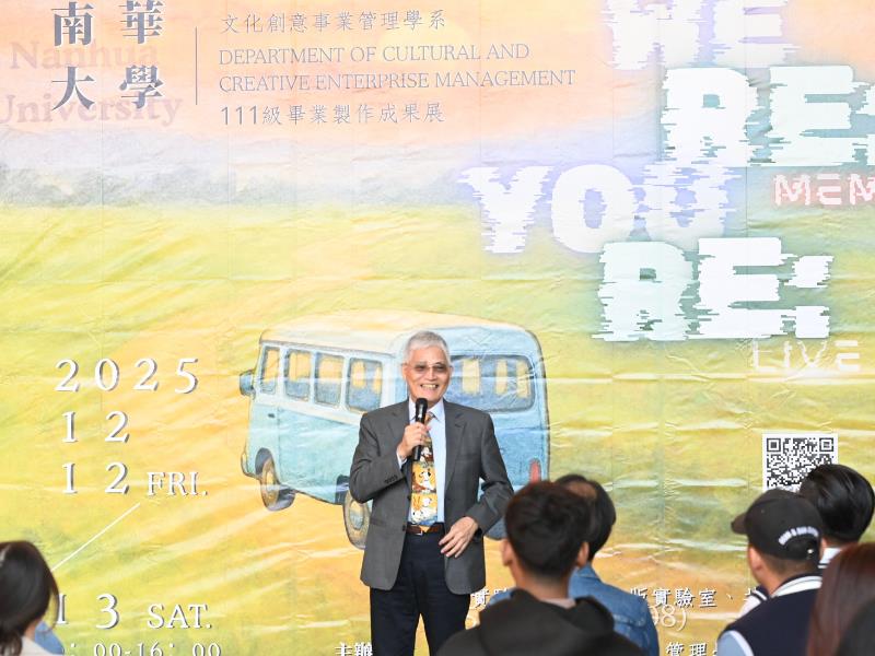 南華大學文化創意事業管理學系111級畢業專題展《We Re: member; You Re: live》,於12月13日圓滿落幕,為期兩天的活動吸引校長及300多位師生、系友與校內外貴賓參與。該展覽透過創意展演與互動體驗,共同回望文創系的學習軌跡與成長故事。
