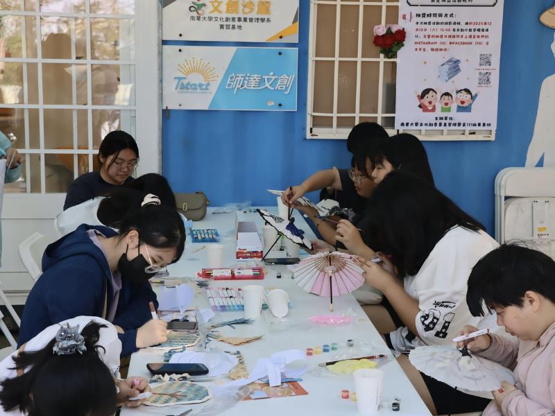 南華大學文創系舉辦畢業展,讓參觀者體驗製作竹扇子。