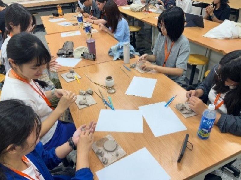 圖1:「台灣南海溪蟹棲地探索與生態藝術加值實踐」通識微學分課程,學生從泥塑、釉燒到成品,親手製作以台灣南海溪蟹為題的交趾陶作品。
