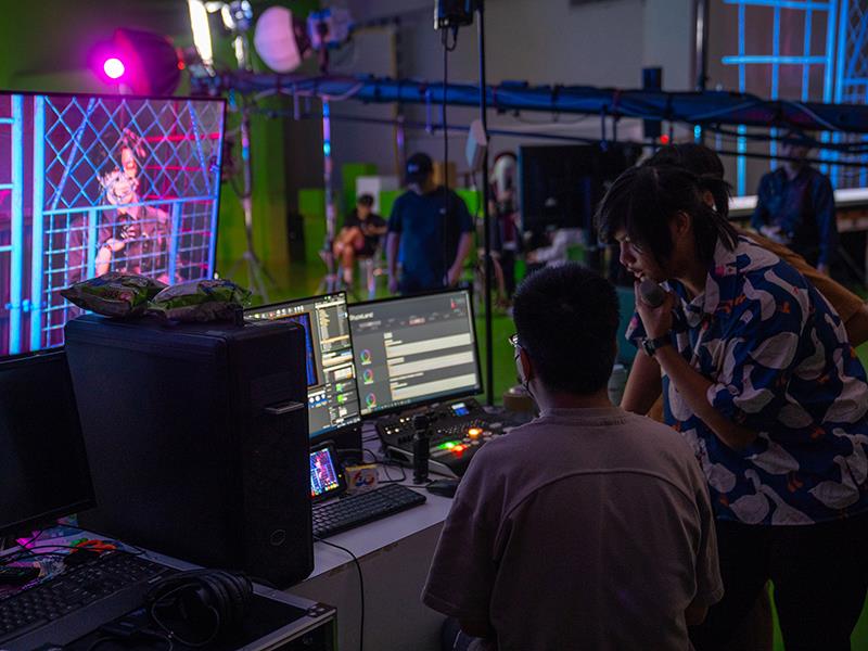 同時,研習社亦邀請來自新加坡的視覺合成講師 David 進行國際級教學,介紹 Blackmagic Design 推出的節點式影像合成軟體 Fusion,帶領學生從基礎邏輯到進階特效逐步實作,實際體驗國際影像後期製作流程。此外,社團也規劃舉辦《虛擬製作 × Cosplay 創作藝術》跨社合作工作坊,結合綠幕攝影棚與即時合成技術,從構圖、布光、拍攝到後期皆由學生親自完成,成功將動漫角色轉化為奇幻虛擬影像,展現跨領域整合的創作成果。