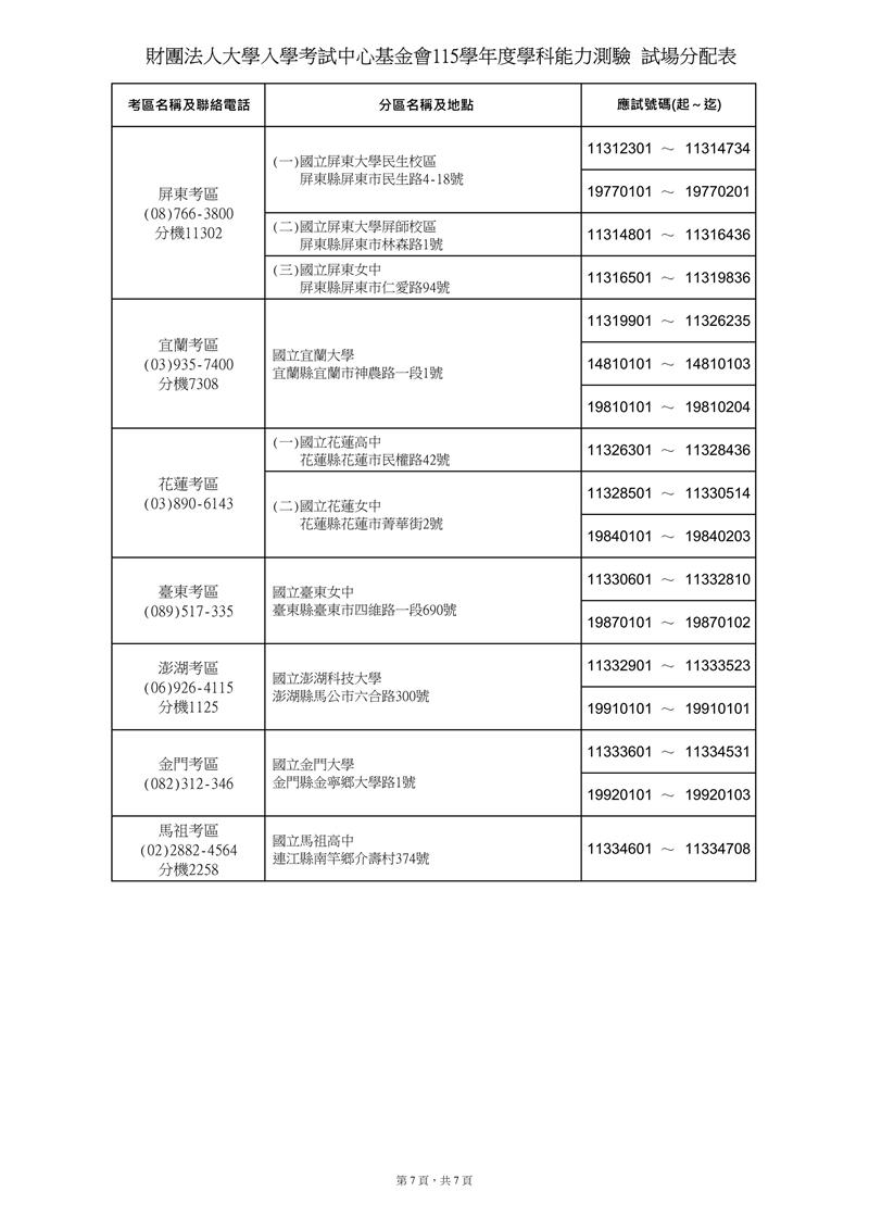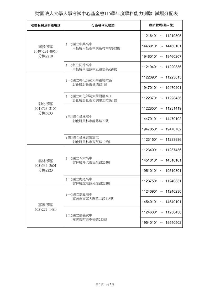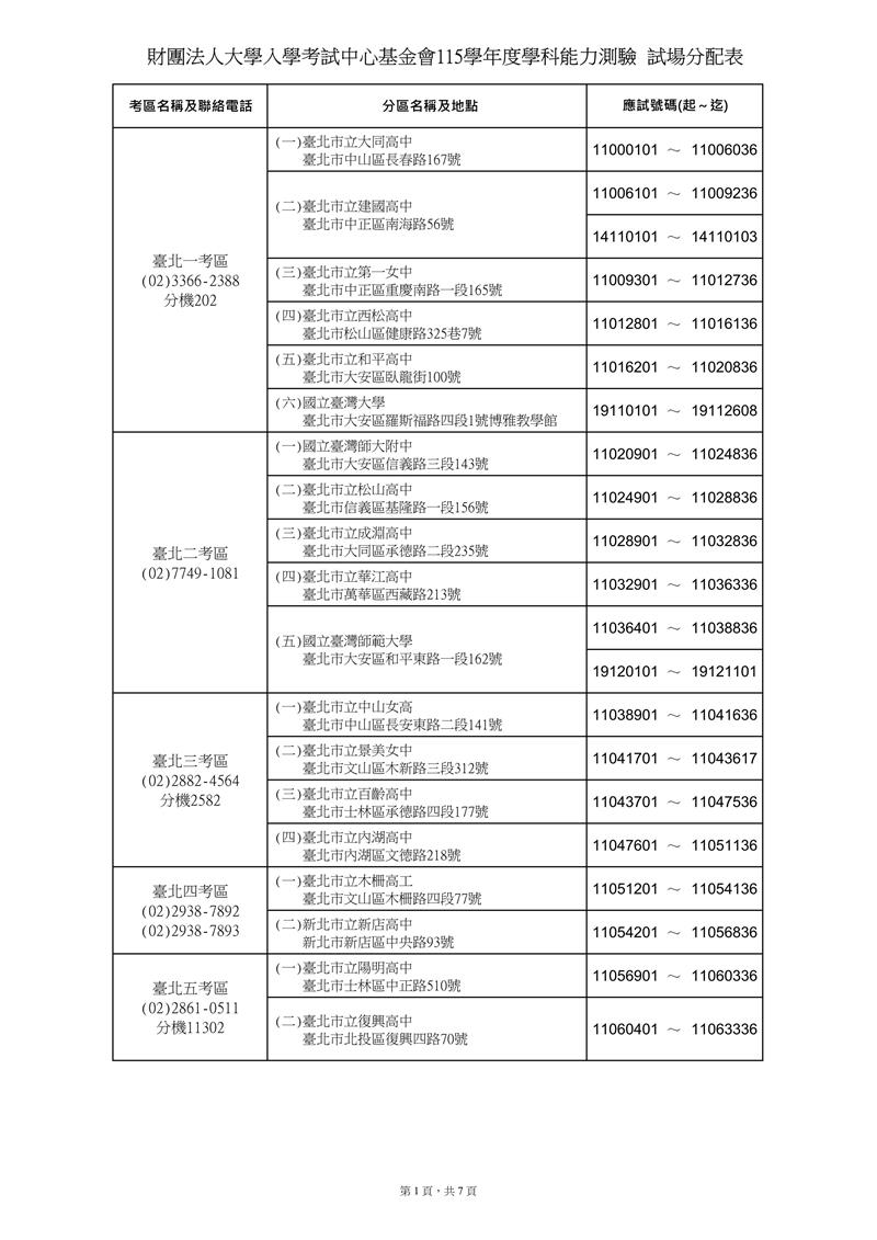 115學測 試場分配表