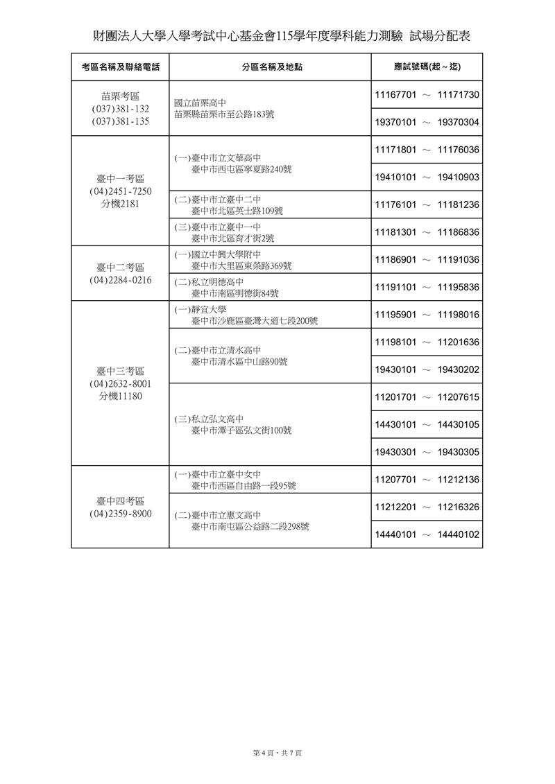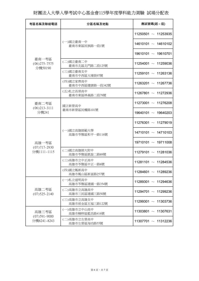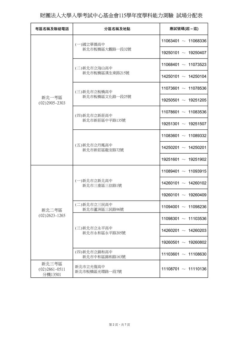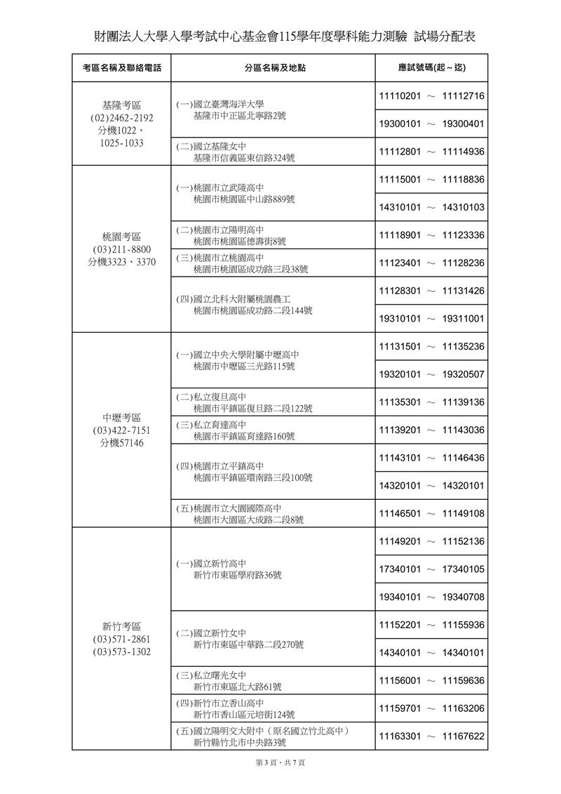 115學測 試場分配表