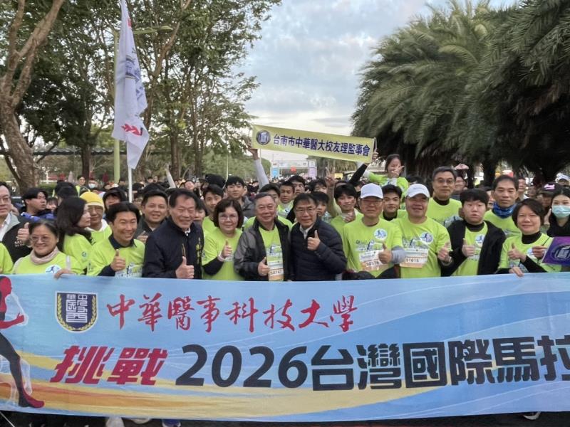 2026 臺灣國際馬拉松於 1 月 11 日清晨在臺南市奇美博物館前盛大登場,中華醫事科技大學國際事務處與新南向專班各系所率領超過 200 位境外學生參賽,與來自臺灣及世界各地的跑者同場競技,展現中華醫大多元國際校園的活力與凝聚力,成為本屆賽事中相當吸睛的亮點之一。