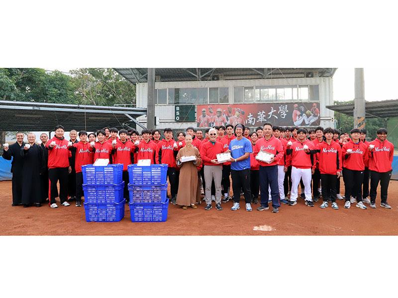 大專盃棒球聯賽八強複賽,南華大學於1月3日迎戰國立體大,除了教職員生到場應援加油打氣,嘉義佛光山圓福寺信眾們也到場力挺,師兄師姐們奮力吶喊為球員加油,球員們也不負眾望,發揮實力拿下複賽首勝,不僅為球隊注入信心,也為後續賽程奠定良好開局,展現南華大學棒球隊的整體戰力與凝聚力。