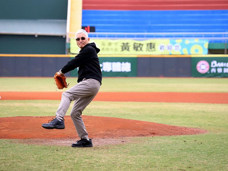 南華大學高俊雄校長受邀為大專盃棒球聯賽公開一級八強複賽開球。