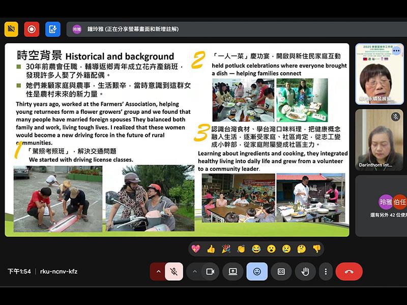 嘉義縣鄉村永續發展協會榮譽理事長吳淑芳分享「關懷弱勢族群:新住民培力與高齡學習推動」課。