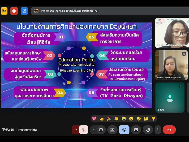 在國際交流環節,泰國帕堯市也由副市長潔拉帕·猜芒 (Jeeratpat Jaimuang) 博士,以及教育、宗教及文化處的處長夢塔甘·帕拉曼尼拉 (Mrs. Monthakan Prangmanirat),分享了他們運用 TKP 知識園區 推動「快樂學習」和數位微憑證的經驗。本次泰國場次特別邀請泰國帕堯大學文學院的達琳通·因塔芬 博士 (Dr. Darinthorn Intapthim) 擔任與談人,與會者就帕堯市的 TKP 模式—其課程設計聚焦於「創業與收入」,強調「給釣魚的竿子,而不是給魚」的概念,以及透過App建立學習護照和微憑證,將學習成果與職涯發展連結—進行了深入交流。