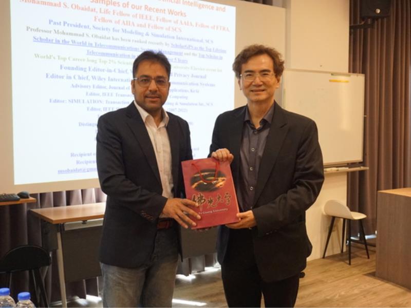 佛光大學應用科技與設計學院為強化研究能量與拓展國際視野,舉辦國際學者交流活動,特別邀請兩位享譽國際的頂尖學者—IEEE 終身會士 Mohammad S. Obaidat 教授,以及巴基斯坦學者 Dr. Sana Ullah 蒞臨演講。兩位學者聚焦人工智慧(AI)與無線通訊等全球科技發展的關鍵議題,為全校師生帶來深具前瞻性的知識交流與研究啟發。
