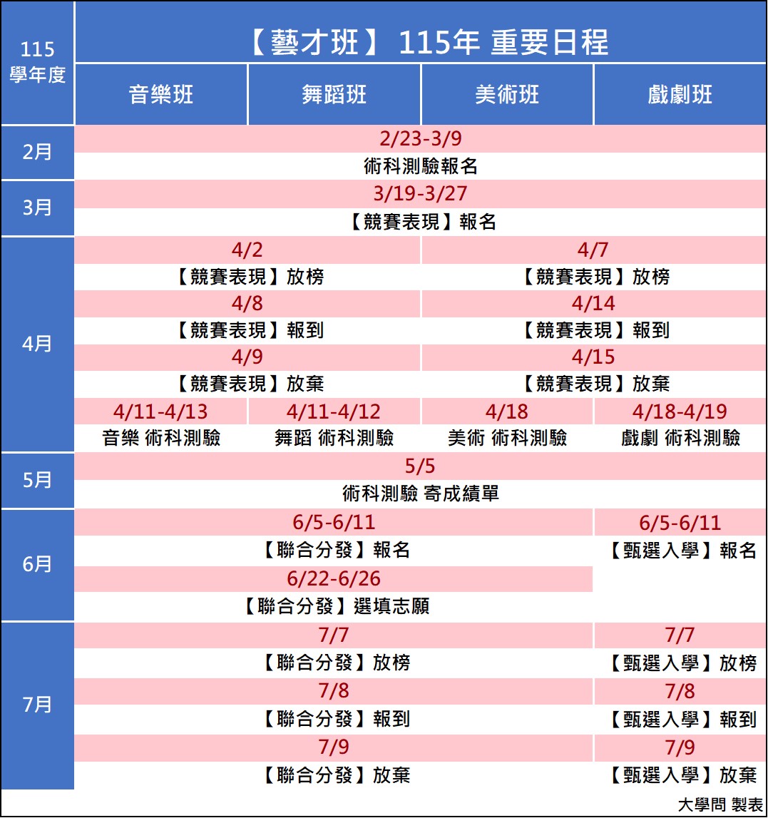 / 情報 / 特色招生 / 【115藝才班】五大重要日程 要留意