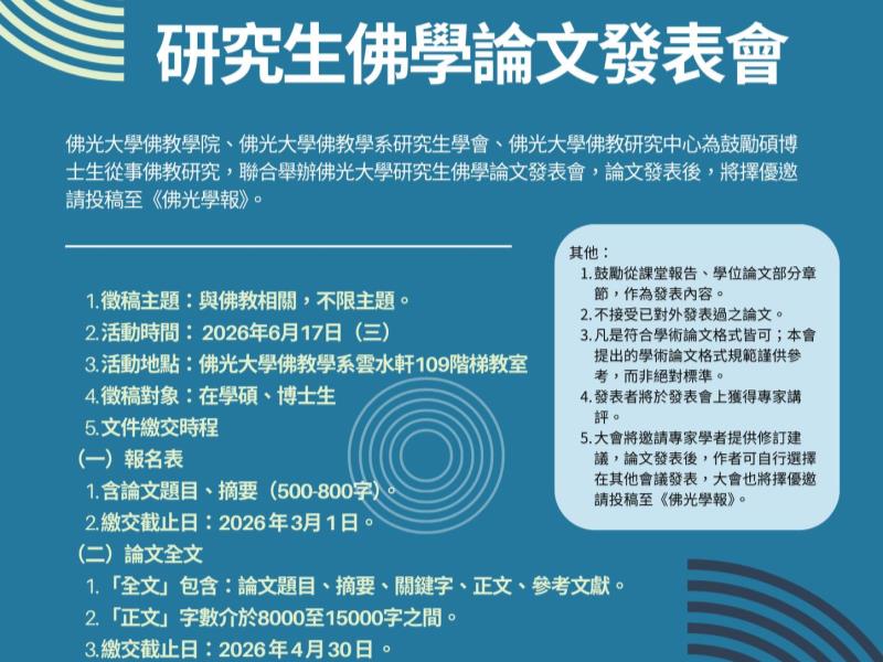 2026 佛大研究生佛學論文發表會|徵稿 Start!