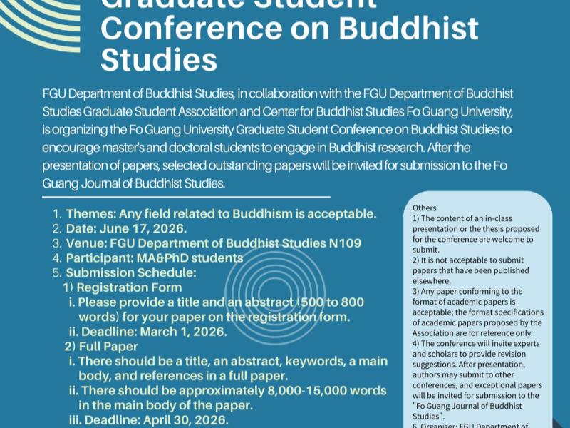 佛大 2026 研究生佛學論文發表會|徵稿 Start! 收藏