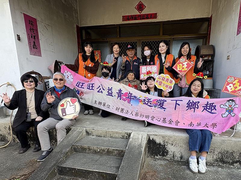 南華大學長期推動「三好運動」,落實「做好事、說好話、存好心」的教育理念,近年來更持續與蔡衍明愛心基金會合作,舉辦「公益青年送愛下鄉趣」活動,深入社區關懷弱勢族群。南華大學於1月8日再度攜手基金會辦理「2026春節歲末關懷活動」,由校長高俊雄率領師長與學生走入社區,為弱勢家庭送上溫暖與祝福。