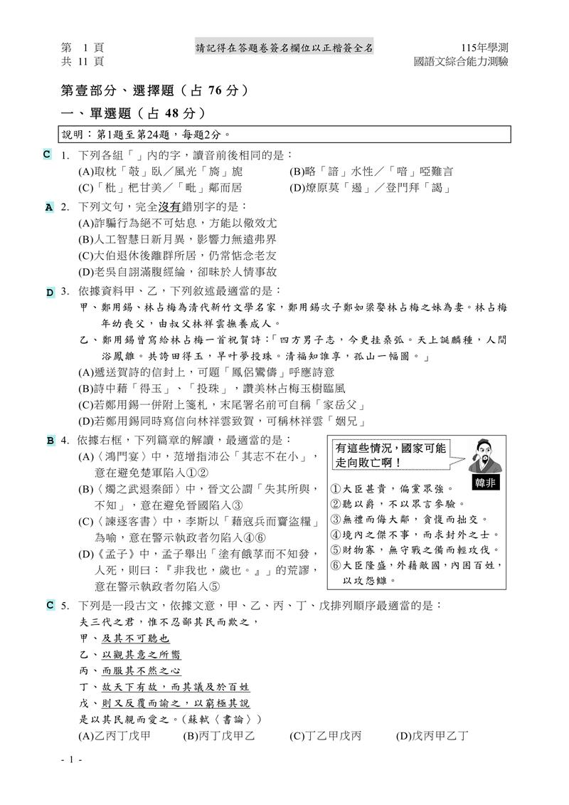 大學問編輯部 2026-01-20 2026-01-20 學測 , 高中國文
