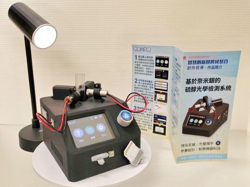 圖1:嘉大電機系「光變捕手」團隊研發之「基於奈米銀的硫醇光學檢測系統」實機外觀,可透過觸控介面進行量測。