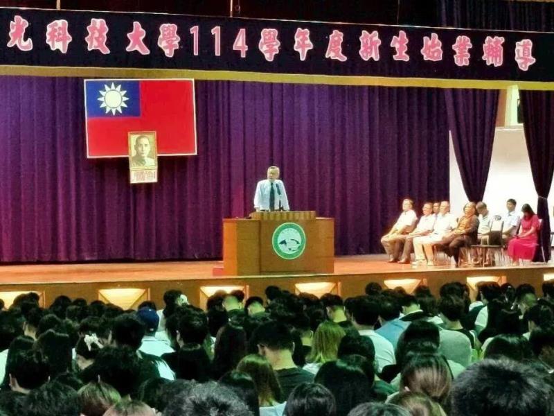 僑光科技大學於 9 月 15 日舉行 114 學年度新生始業輔導,為新生揭開大學生活序幕。當日清晨,學務長率領二級主管們在籃球場迎接新生,氣氛熱絡。企管系新鮮人林家妤同學搶得「第一報到」頭籌,象徵大學新篇章正式啟動。   首先,由各院系及導師時間方式展開,讓新生認識系所資源、課程規劃與未來學習方向。接著由學務長蔡源成進行簡報說明,內容包括品德教育、人權法治、智慧財產權、租屋安全、交通安全和預防詐騙等,都是大學生生活中超實用的必修課題。蔡學務長也特別強調,僑光重視學生的全人發展,透過「六心」服務(愛心、耐心、關心、細心、用心、熱心),希望同學不要因為任何因素而輕易輟學,並確保每位學生都能在安心、支持的環境下成長。